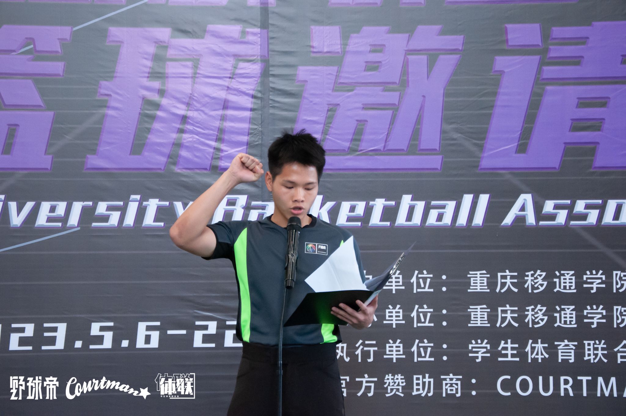 夏至的球场浮动着燥热的气息,由大学生艺术团带来开场舞。焕发舞动的激情;绽放激扬的青春曼妙的舞姿;点燃了赛场也燥动了同学们运动的心。主持人站定台上介绍比赛赛事,各队球员怀着必胜的信念陆续进场。梦想的篮筐用奋斗浇灌,青春的赛场用热血丈量。赛场上运动员们怀着一腔热血,为荣誉而战、为自己而战。在观众的热烈欢呼中来自重庆移通学院、移通重庆对外经贸学院、重庆工商职业学院、重庆应用技术职业学院、重庆工商大学派斯学院的球员和裁判员的依次向我们走来。每一位运动员都带着必胜的决心打好每一场比赛,每一位裁判员都将以“公平、公正、公开”的原则严格对待每一场比赛。