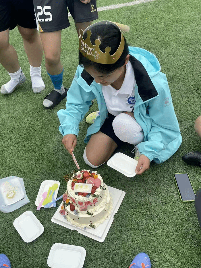 团建活动:本月校女子足球根据传统计划给5月过生日的队员庆祝,在比赛期间举行团建活动是为了让队员们能相互支持了解,团结一心,能感受到足球队带来的温暖,大家不但能在球场上一起拼搏还能在生活中找到家的感觉。