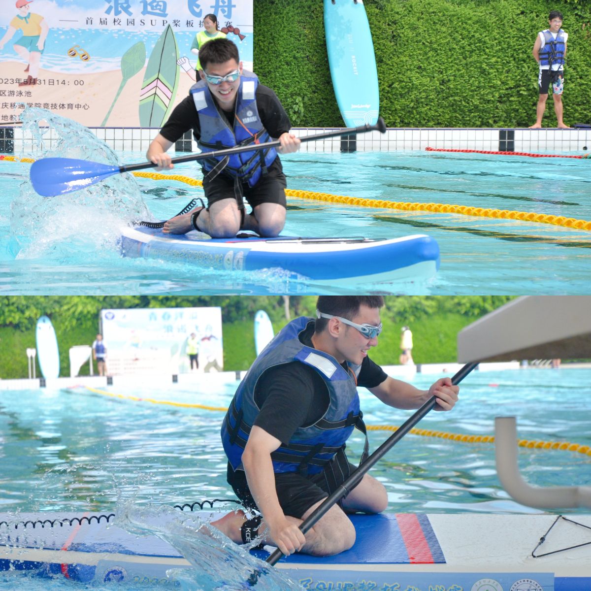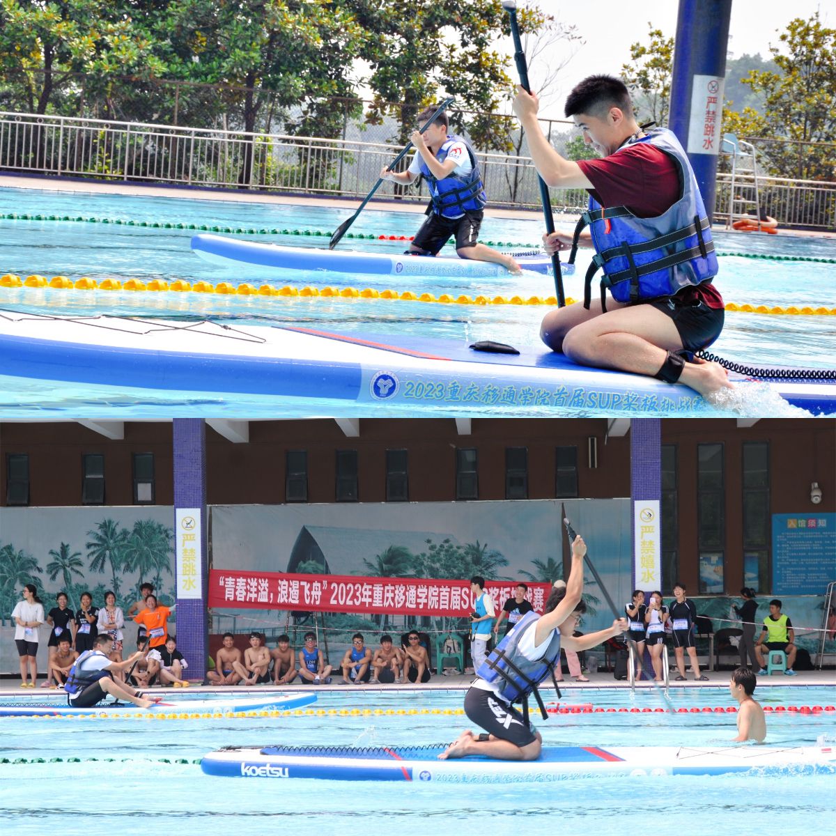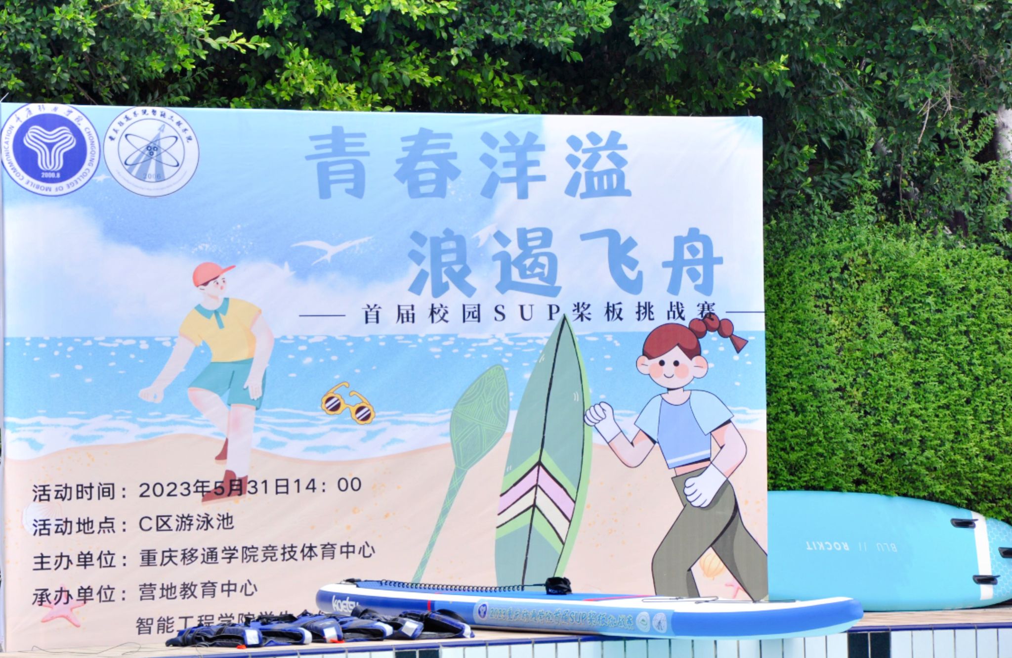 为全面推进大学生体育教育,促进“以体育德、以体育人”,加快建设体育强国,由重庆移通学院竞技体育中心主办,智能工程学院学生会体育协会、营地教育中心承办的“青春洋溢,浪遏飞舟”——2023年重庆移通学院首届SUP桨板挑战赛于5月31日在C区游泳池拉开序幕。