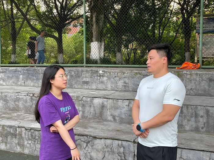 2023年6月6日,在菩提书院,湘渝铁人三项队黄静教练与远景学院付老师讨论训练需要改进的地方,总结了本学期以来所取得的成绩,并对本学期的工作互相进行点评。