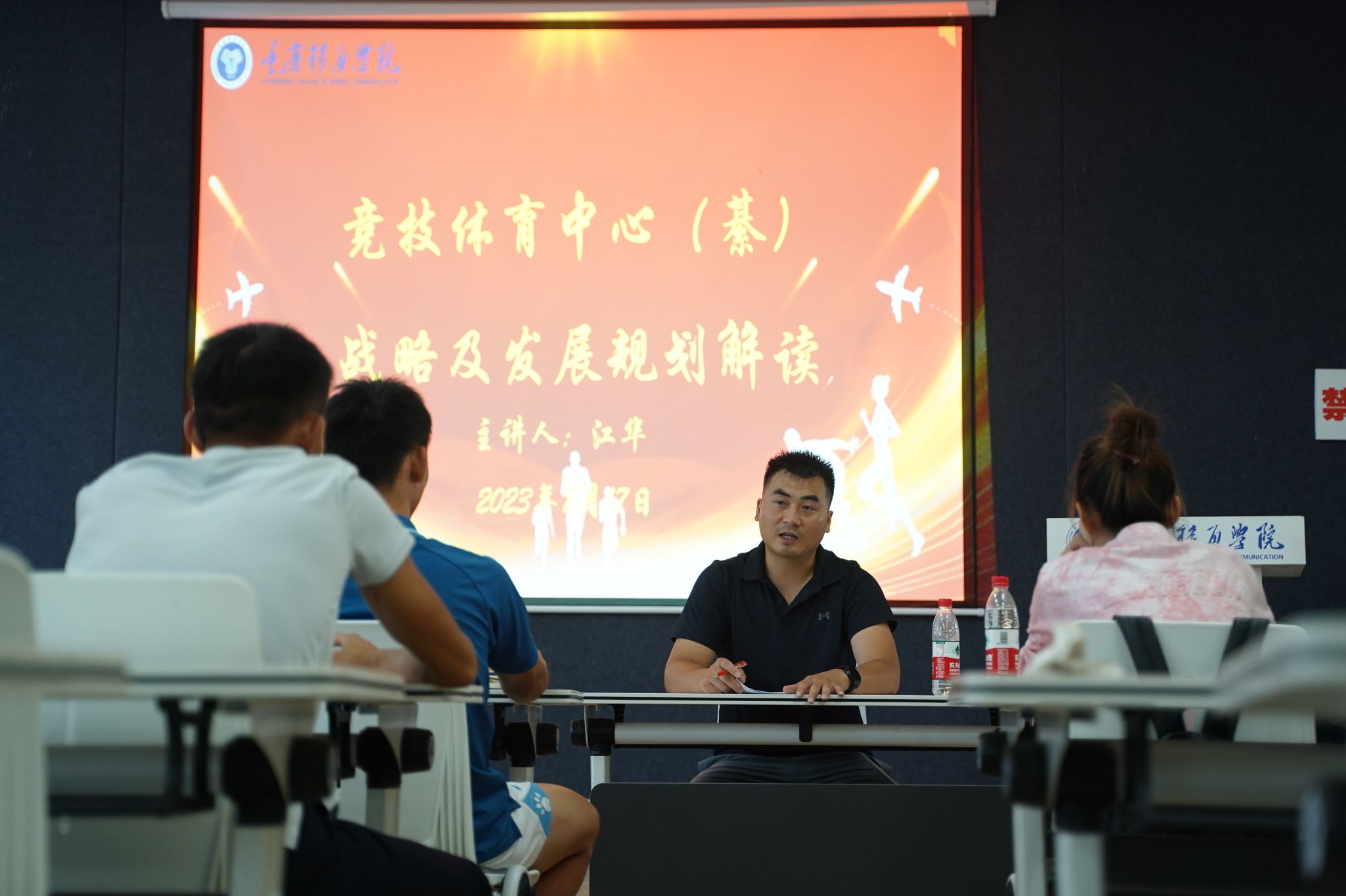 开班仪式上,竞技体育中心江华副主任进行了简单自我介绍,并组织全体新教师逐一进行了自我介绍和作未来五年的职业规划。后江华主任对《 竞技体育中心(綦)战略部署以及发展规划》进行了详细、深入的解读。
