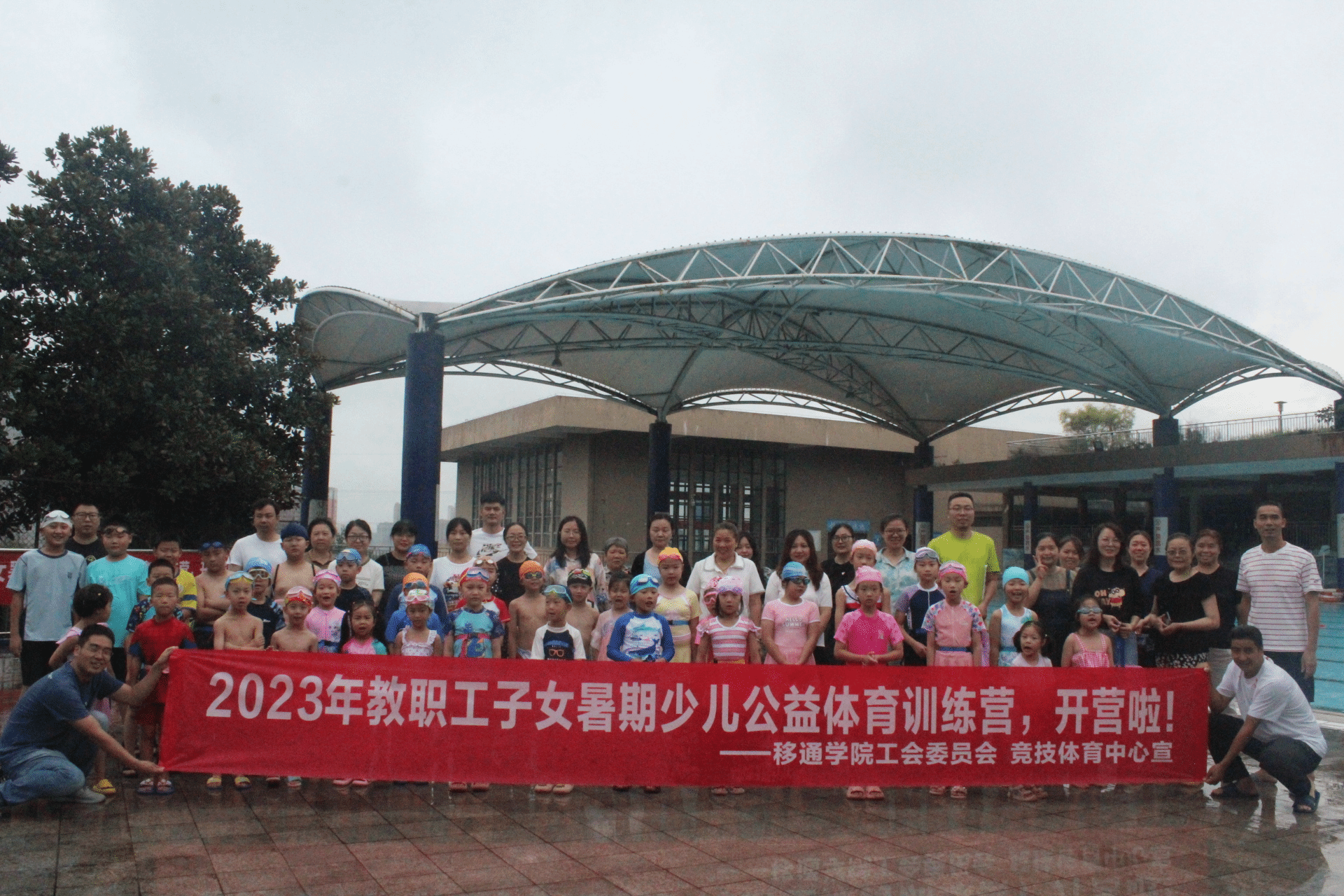烈日炎炎,暑期孩子们该去哪,是不少移通职工家庭共同的困扰。为积极回应职工家庭所需所盼,把党委和工会的关心关爱送到职工心坎上,帮助解决暑期托管难题,移通工会委员会联合竞技体育中心主办了2023年教职工子女暑期公益游泳训练营活动,并于6月29日上午10点正式开营。在本期活动开始之前,就得到了学校各方领导以及后勤资产等各部门的支持,活动报名一经发出瞬间爆满,共有53个家庭,78位小朋友参与了本次游泳训练营活动。