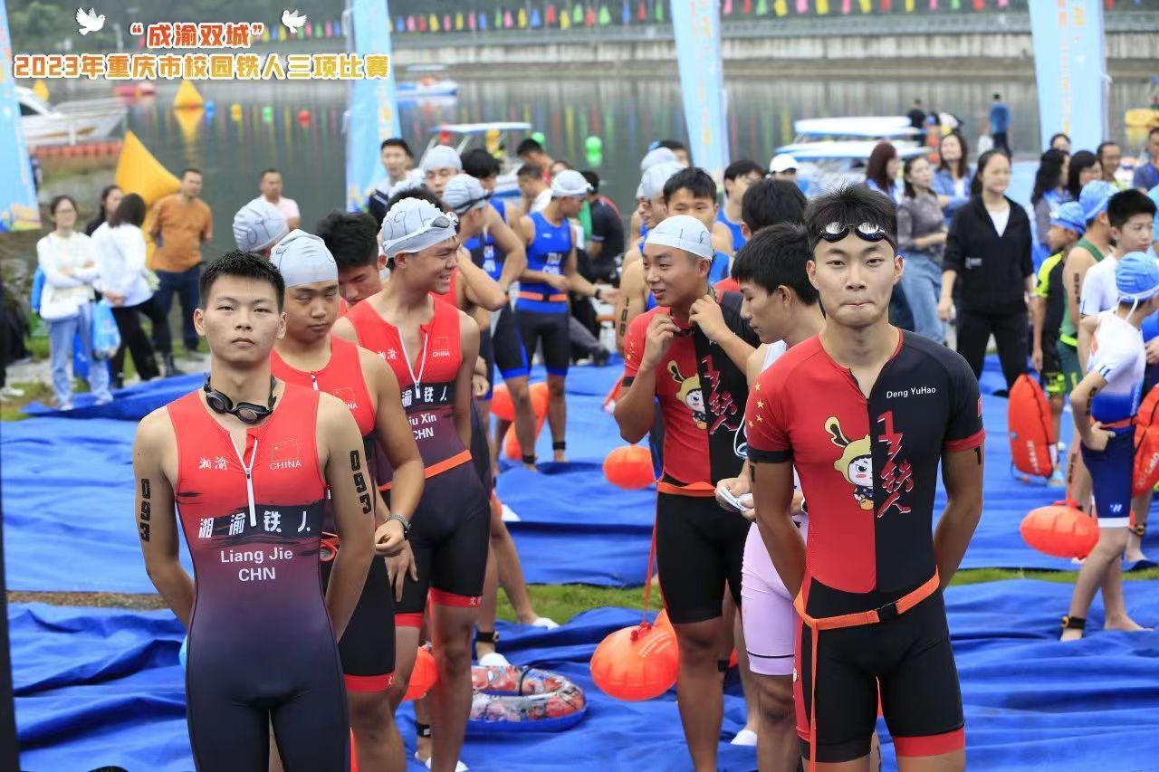 此次赛事由重庆市体育局、重庆市教育委员会主办,设有小学组、中学组、大学组等组别,旨在以赛促学,推动青少年体育的健康发展,同时也吸引了来自川渝地区校园铁人爱好者的共同加入!在“成渝双城”2023年重庆市校园铁人三项比赛中,大学组总距离6.8公里、游泳300米、自行车4.5公里、跑步2公里。从游泳、自行车到长跑的连续完成,不仅需要运动员具备出色的身体素质和技术水平,更需要他们具备坚韧不拔的毅力和勇气去超越自己的极限,面对各种困难和挑战。