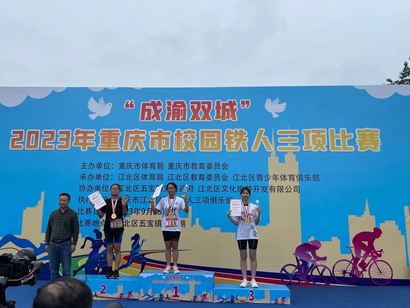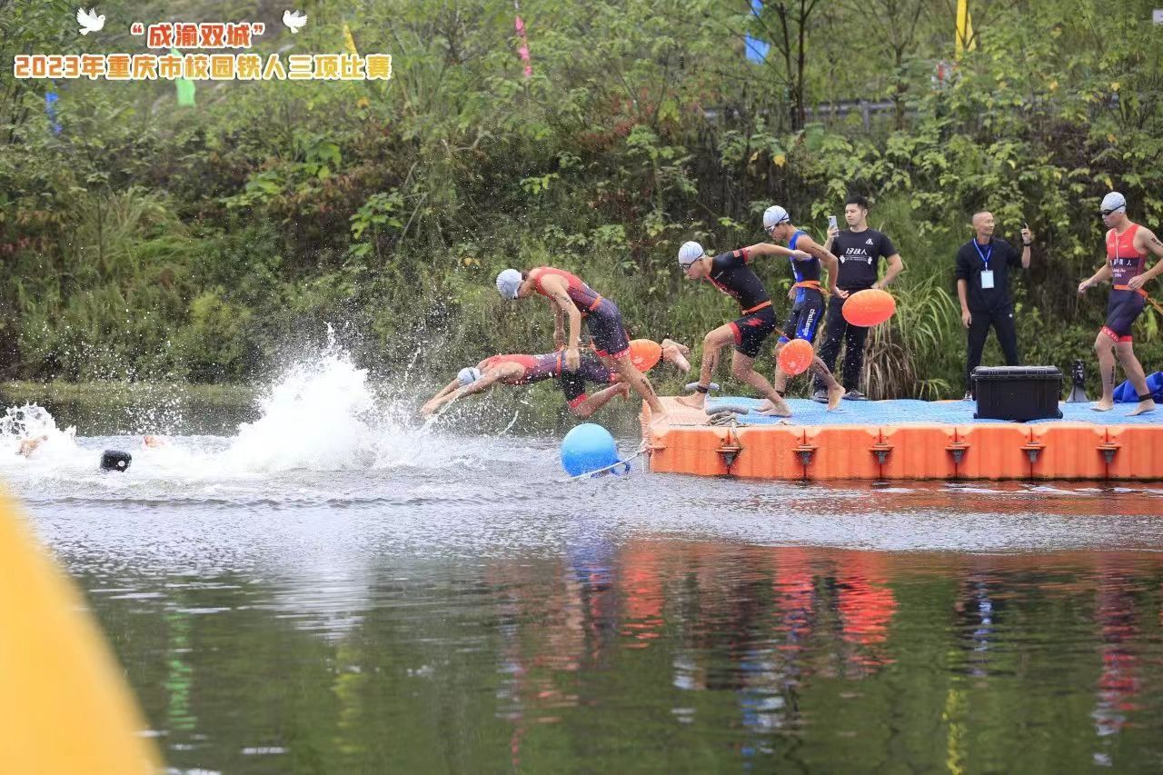 9月28日,“成渝双城”2023年重庆市校园铁人三项比赛在江北区五宝镇御临湖鸣笛开赛,一场结合了力量、耐力与技巧的比赛激情上演。经过一系列激烈的角逐,我校代表队成员在此次赛事中突出重围,最终在大学组女子组中斩获前三名,大学组男子组中挤进第三名,在大学组团队奖项中,荣获得团体第一名!在此,恭贺我校铁人三项队在此次比赛中斩获了佳绩。