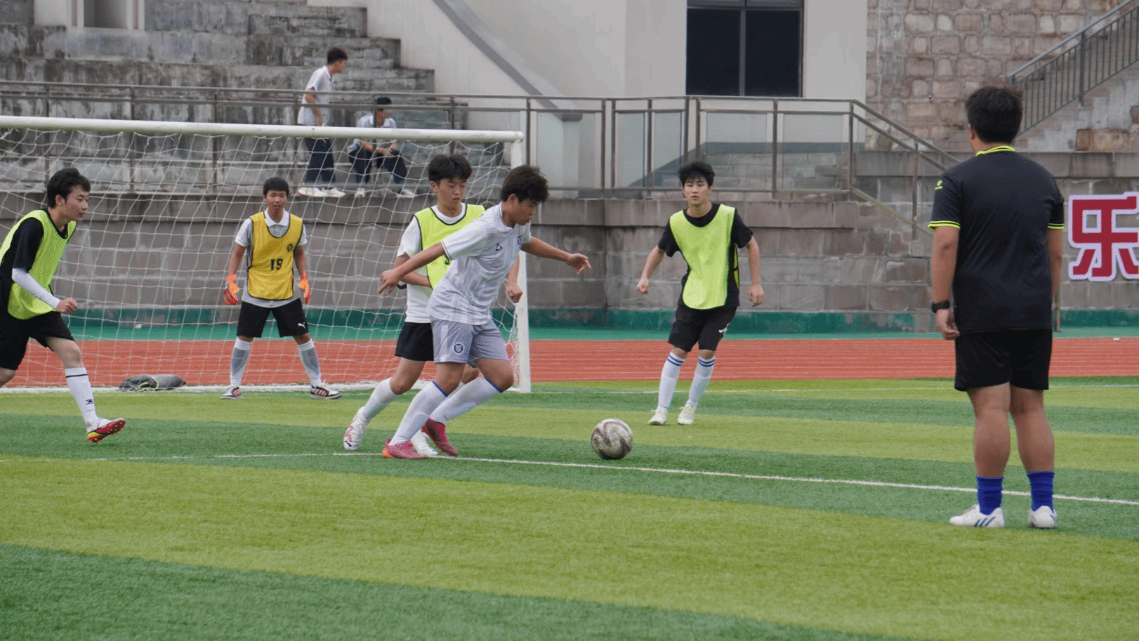 虽然天气已经转寒,但战火在绿茵场上继续蔓延,球员们的热情十分高涨。绿茵成为了他们实现梦想的舞台,他们用激情舞动了青春。在场上,他们精彩的传球、盘带、过人、射门不时赢来阵阵喝彩声。他们敢于拼搏、争夺胜利,同时配合默契,充分诠释了竞技的魅力,并向世界展示了昂扬向上、充满活力的新时代少年风采。