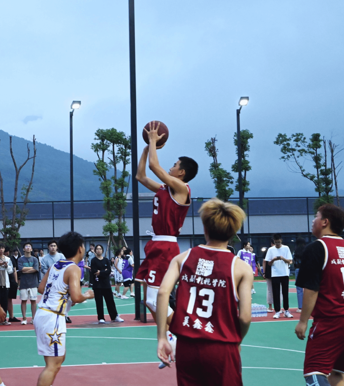 各学院的队员们秉持着“输球不输斗志”“输球不输心情”“输球不输友谊”的和谐而又催人奋进的比赛原则,在这个赛场上充分展现了自己的水平,也赛出了自己的风格。比赛中,队员们展现出了灵活的运球技巧、精准的投篮能力以及默契的配合,充分展示了篮球运动的魅力。赛场下的观众们也为赛场上的比赛给予热烈的掌声和欢呼声,将比赛的气氛推向了高潮。