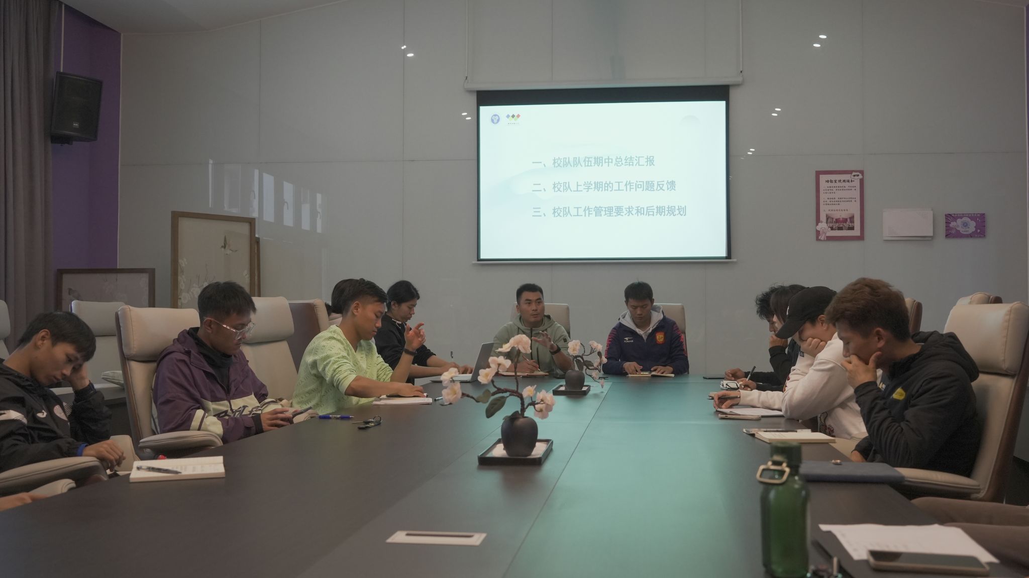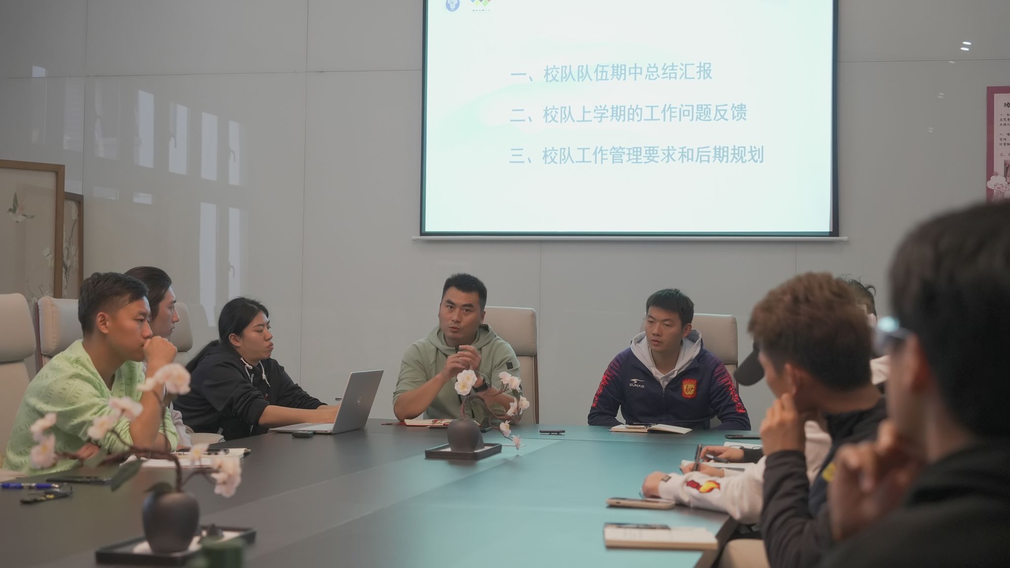 会议第二项,各教练员针对上半学期工作中的问题进行了反馈,江华主任针对校队的管理问题和优化方案同教练们进行探讨,逐一进行了解答,并对存在的问题提出了建设性改进意见。表明校队应提升队伍管理规范性,优化训练结构。参赛方面,鼓励教练们多寻找比赛机会,多带队参加比赛。