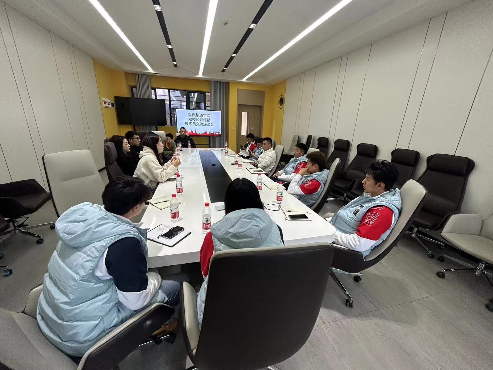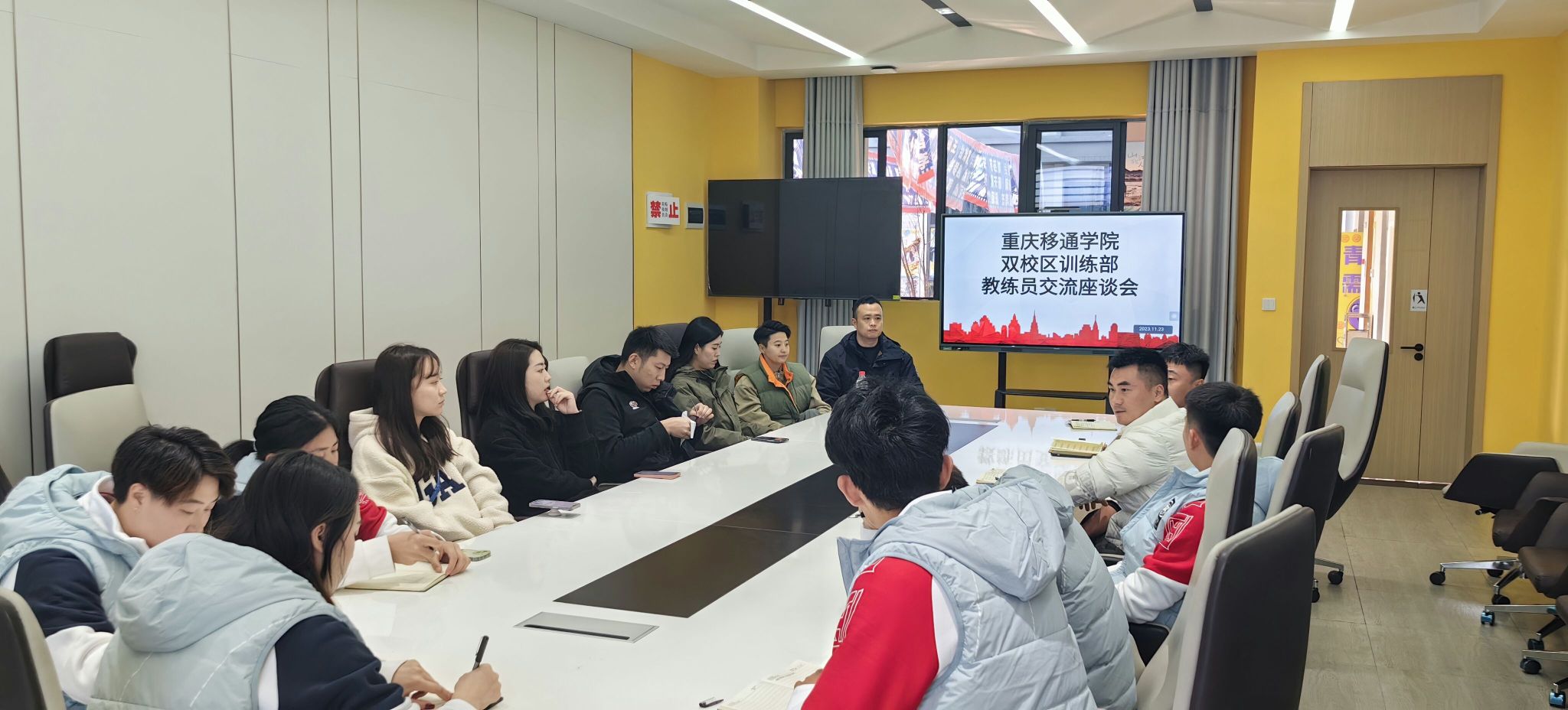 2023年11月23日,重庆移通学院双校区训练部教练员交流座谈会如期举行。本次会议由竞技体育中心江华主任带领双校区篮排足及啦啦操教练参与。该会议旨在解决当前面临的问题,并提出有效措施来增强团队凝聚力和促进学生之间更好地交流。开场时,江主任明确了本次会议的主题是就如何实现双校区教练组合作、外出比赛集中培养方式等问题进行深入研究与探讨,希望通过此次研讨能够达到统一思想、加强协同工作并形成共识。