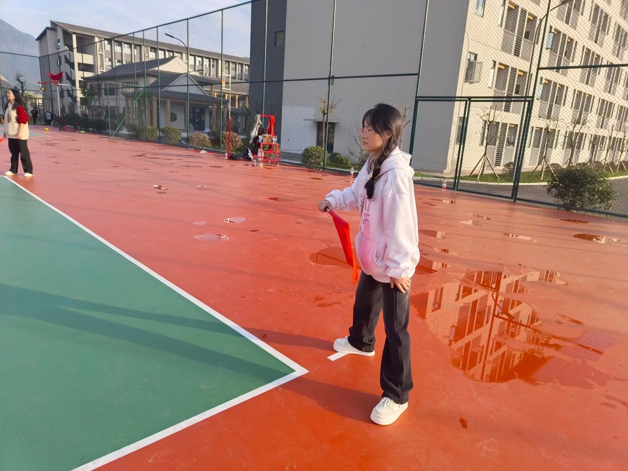 本次培训学员们分组为重庆移通学院男子排球队训练赛执哨,大家在实践中学习交流,相互切磋。首先对第一期缺席的学员进行司线的培训,学员们学习如何站位如何挥旗,实践过程中校排球队队员详细讲解了排球比赛规则中常见犯规判定方法、裁判职责以及司线该如何去看球的落点等内容,根据现场比赛做实际演示,随后让学员轮流上场实际操作,校排球队队员一一为学员们指出其在实际操作过程中存在的错误并耐心的指导学员进行改正,与校排球队队员如此近距离的交流,使学员们开阔了眼界,受益匪浅。