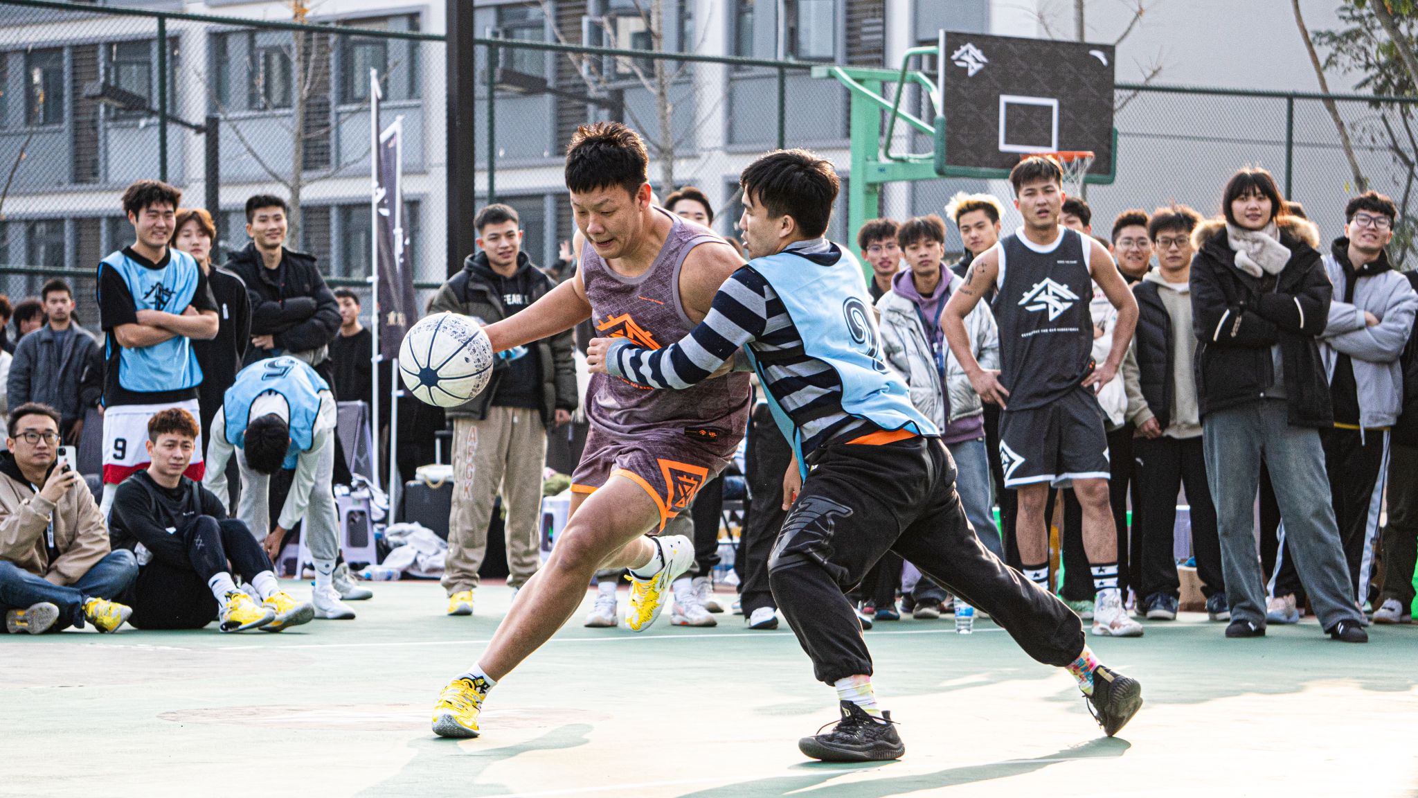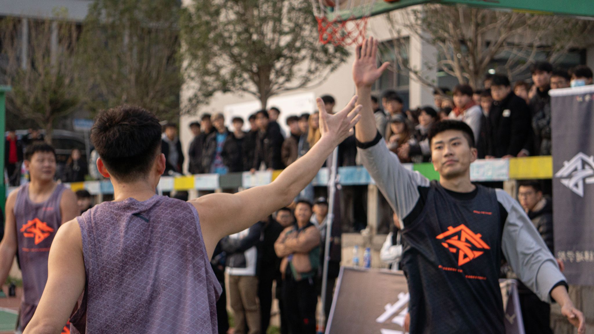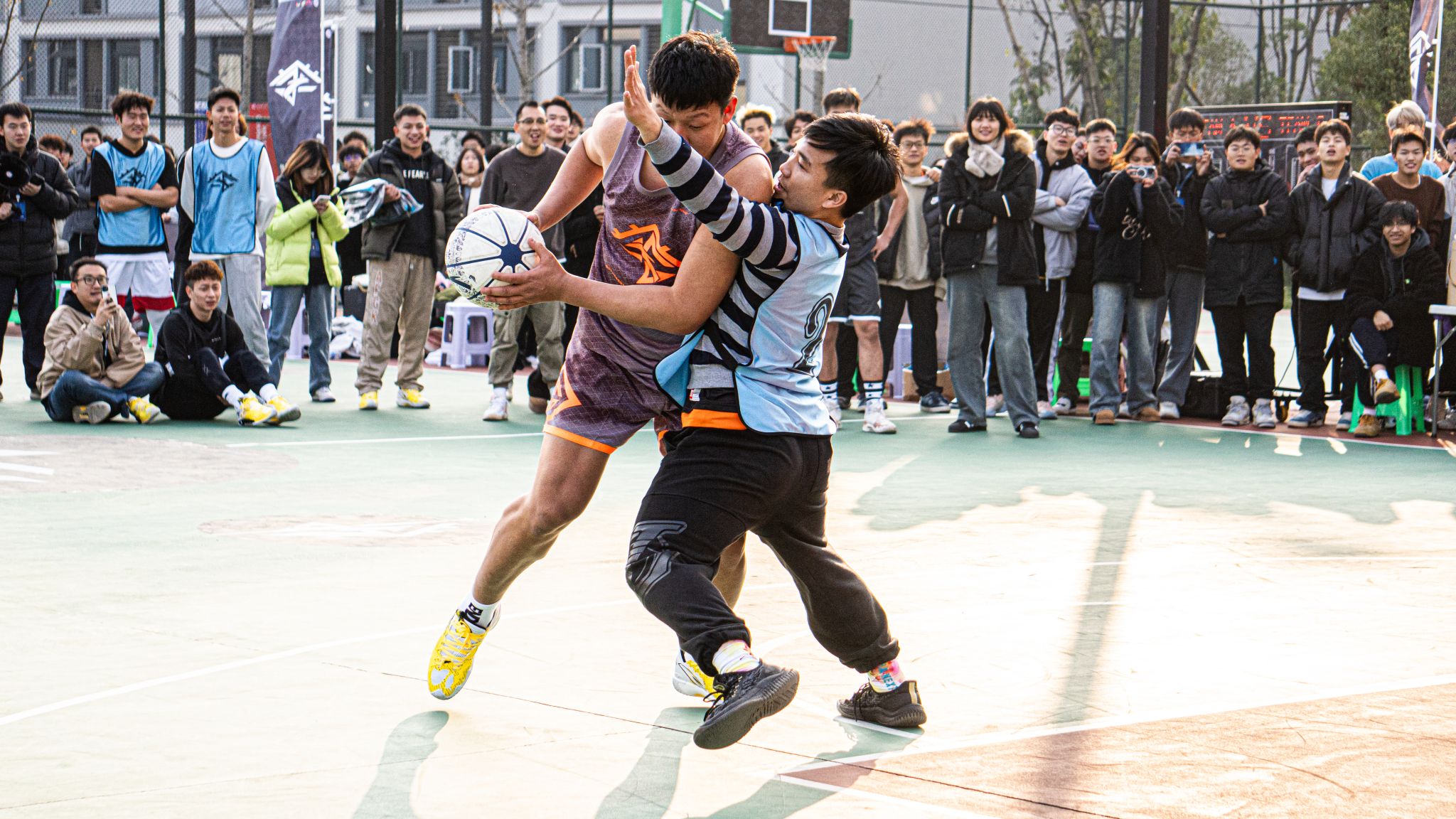 活动现场,安踏篮球明星球员携手校园篮球爱好者,为我们带来了一场独属于篮球的视觉盛宴。一个篮球、一身球衣,一往无前、热血澎湃、激情无限。信念、耐力、配合与激励在篮球场中点点凝聚。力量、拼搏、奋斗与热血在篮筐和计分器上展现。场上双方攻防不断,场外掌声、喝彩声连连。在比赛中,每一个进球、每一场比拼、每一幕画面都令人振奋!安踏篮球明星球员以身作则,为学生们展示了篮球运动的魅力和拼搏精神。在互动环节,学生们纷纷走上球场,与安踏篮球明星球员们同场竞技,感受专业篮球的氛围。