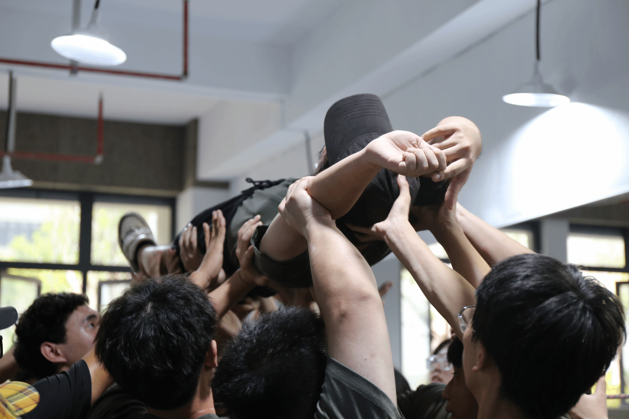 课程伊始,张桃教练以选拔特种兵的方式组建团队,三名队长自荐出列,以“意志力挑战”的方式经历选择、犹豫、坚定的心路历程,数以百计的俯卧撑告诉大家每一个选择都要付出相应的代价。经过队长与队员的双向奔赴,三支独具特色的队伍应运而生。一个个响亮的队名、一声声激昂的口号、一首首振奋人心的队歌体现着每个队伍独特、鲜明的队魂。