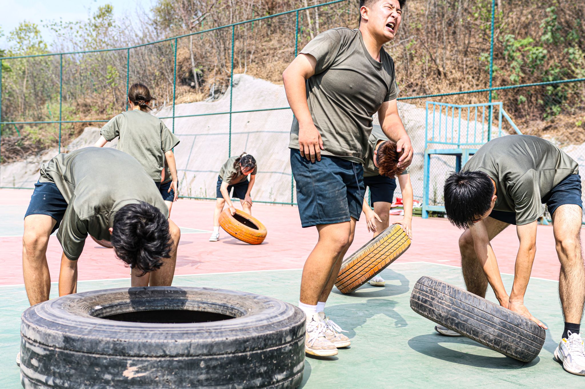 晨光初露,迎接他们的第一项挑战便是队列训练、操演展示、肩扛原木的环湖赛跑,以及携带轮胎的往返冲刺。每一项任务都是对团队坚忍不拔的考验。口号声此起彼伏、整齐划一,动作协调一致,这些都成为了团队纪律的基石;轮胎的沉重成为了检验意志的试金石,激励着队员们突破困境;而肩上的原木,每一步都考验着他们的精神力量。这些活动不仅深刻磨练了团队成员的体能与意志,更是对团队凝聚力和精神风貌的一次全面展现。它们如同明镜,反映出团队的纪律性与和谐,映射出每个人对集体荣誉的坚定追求。