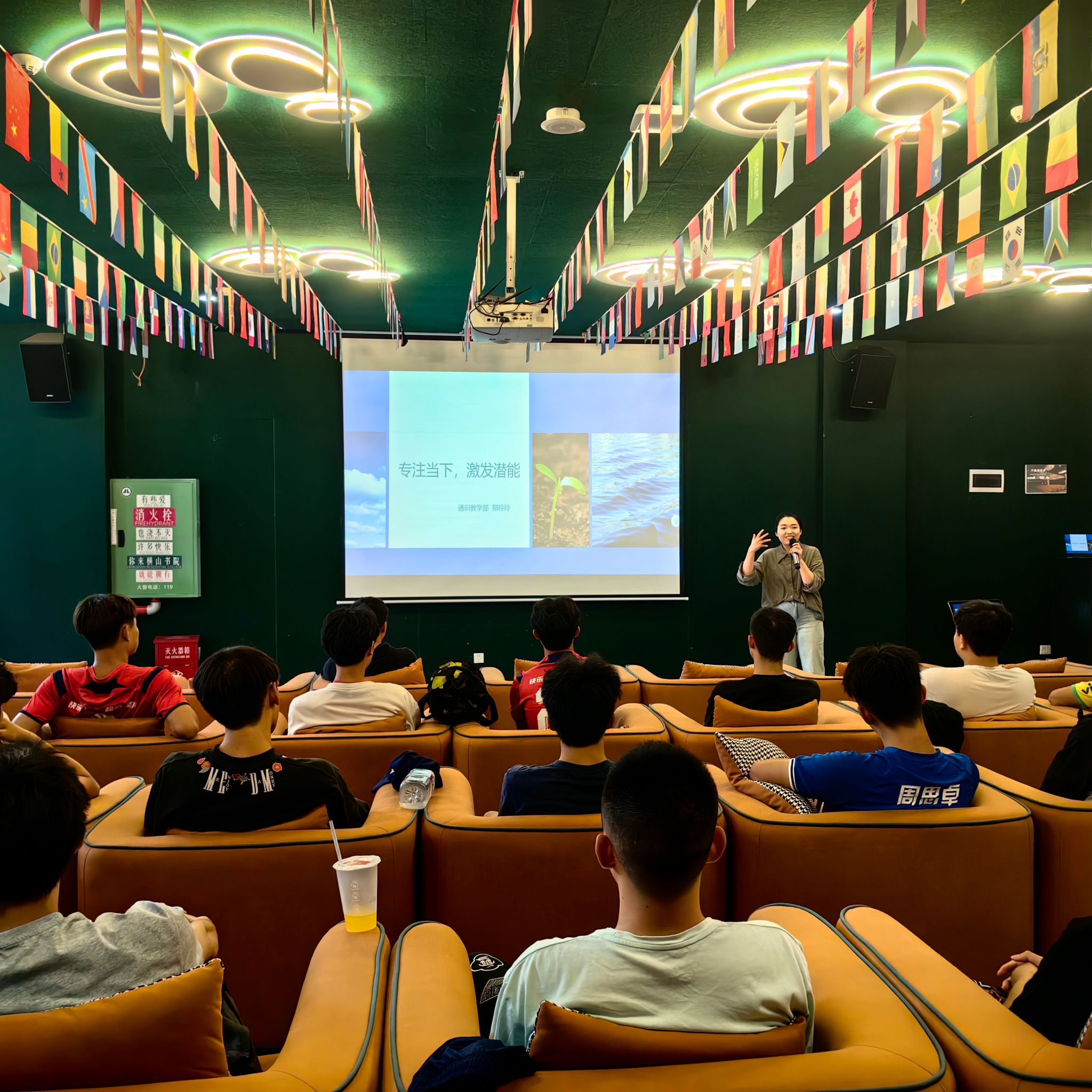 沉着冷静,专注当下。通识教学部教师郑玲玲从积极心理学的角度出发,结合心流体验的研究,为队员们带来了如何培养自信心和专注力的方法。她强调了积极心态在训练和比赛中取得成功的重要性,并指出心流体验在其中的关键作用。郑老师通过分享知名运动员如何专注于当下、克服困难、取得佳绩的案例,向队员们展示了积极心理学的实际应用。郑老师的方法为运动员们在竞技的征途中开辟了一条全新的视野,帮助他们在赛场上面对挑战和压力,也能保持一颗冷静而坚韧的心,发挥更佳状态。