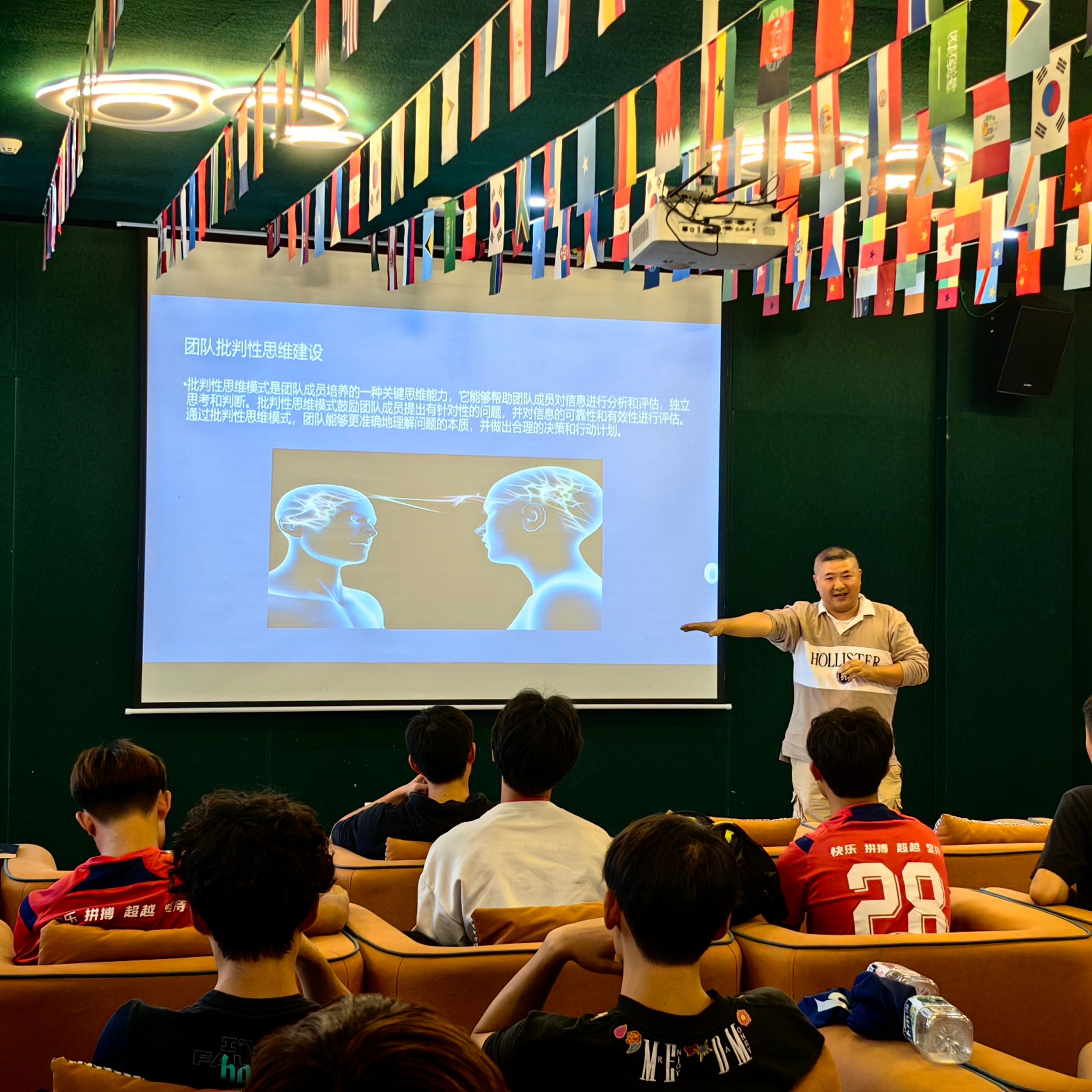 团结一心,凝聚力量。张晟老师通过互动式教学,从批判性思维角度引出团队建设,并强调,批判性思维不仅是对问题的独立分析与判断,更是促进团队协作与创新的思维方式。在足球比赛中,这种思维方式尤为重要,而团结正是批判性思维在团队建设中的生动体现。张老师指出,在球场上,每个球员都扮演着不同的角色,若想取得胜利,就必须相信队友,建立紧密配合,共同面对挑战。