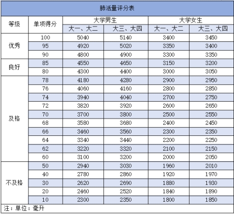 国家学生体质健康测试总表
