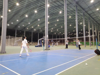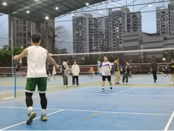 羽毛球场,白羽翻飞尽显拼搏风采。
