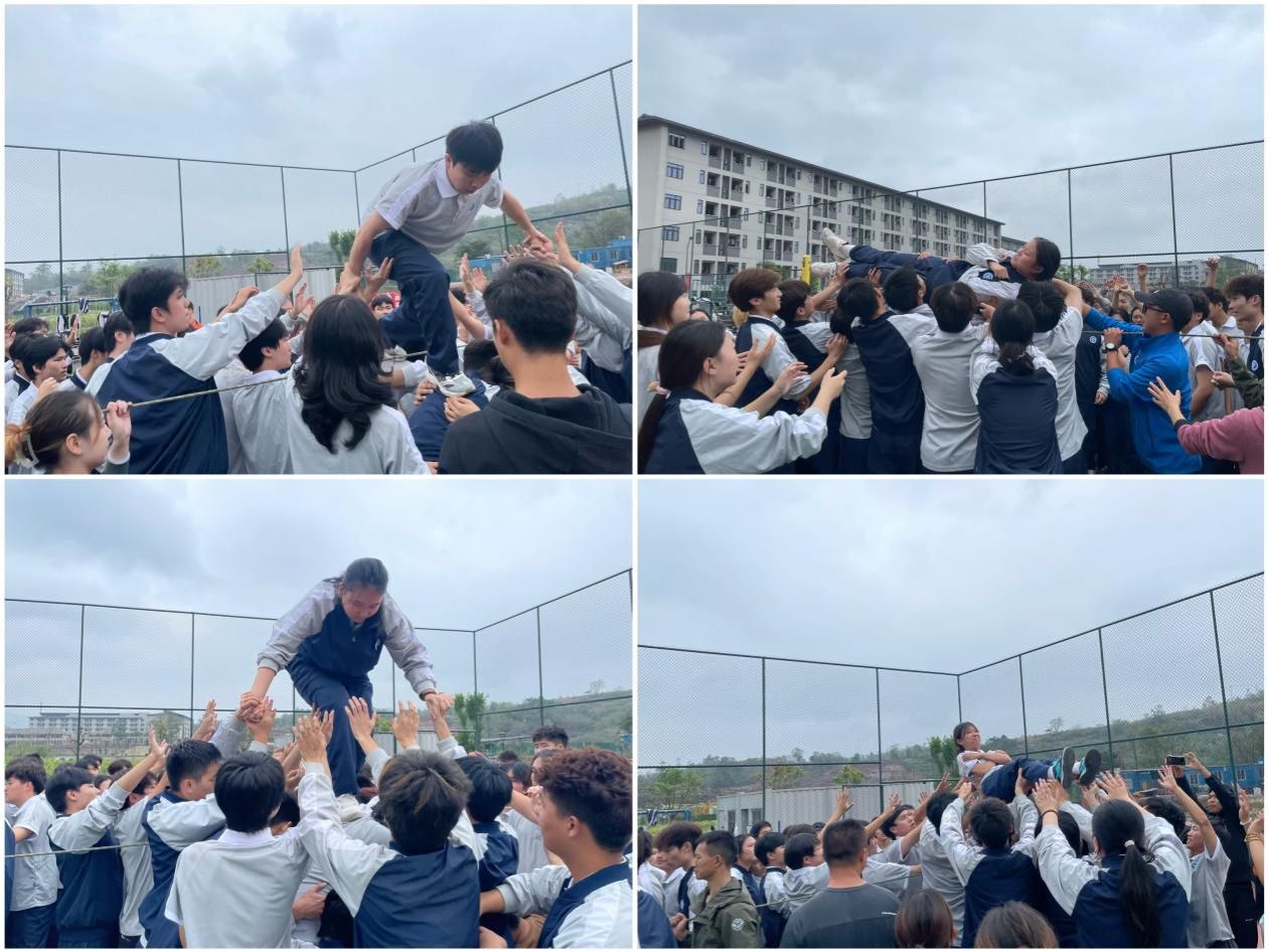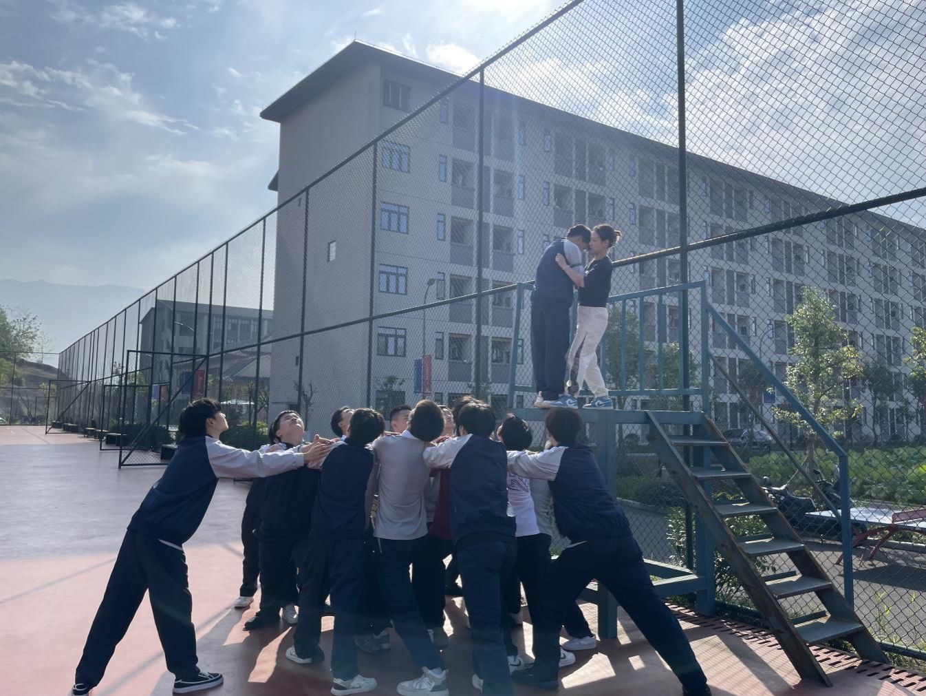 背摔前的真挚鼓励响彻云霄,细雨也阻止不了大家的决心,背摔队员克服恐惧、绷直身体向后倒去,把信任给予每一位保护队员,保护队员们齐心协力,伴随着一声声欢呼,安全接下每一个伙伴。在整个项目过程中,在教练的引导下,同学们克服内心的恐惧,勇于挑战自我,队员之间建立起深厚的信任。