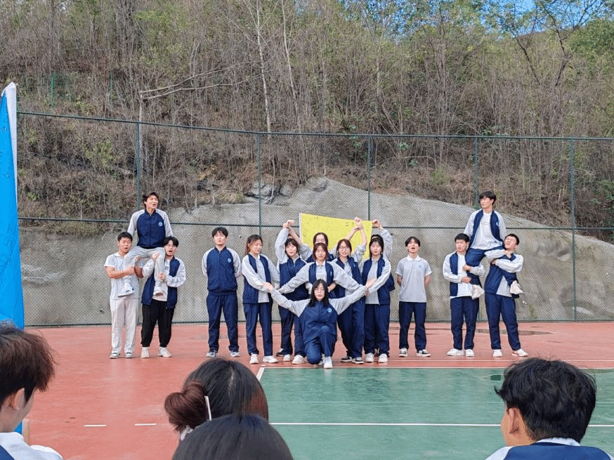 随着教练清脆的哨音响起,同学们迅速整队,以最佳状态迎接即将到来的团队文化展示。他们满怀激情地进行团队展示,在接下来的两天里,八支小队各自进行三次团队化展示。展示结果有好有坏,同学们越挫越勇、积极调整最终换来团队化展示评分的显著提升,充分展现团队的韧性与进步。