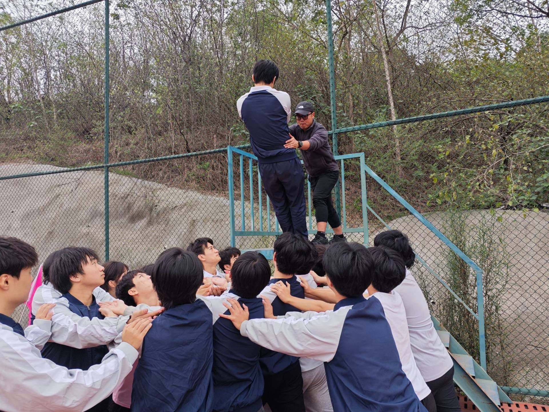 在信任背摔这个项目中,同学们要轮流站上1.6米高的背摔台,背对着团队向后倒,由其他队员安全接住。这不仅考验队员们的心理素质和勇气,更是团队成员之间信任和默契的挑战。在项目挑战过程中,所有的队员都谨记教练的叮嘱,即使手再酸、再痛也绝不退缩,不放弃不抛弃任何一位队员的信念深入人心,这种信任和支持让他们感受到前所未有的力量和温暖。