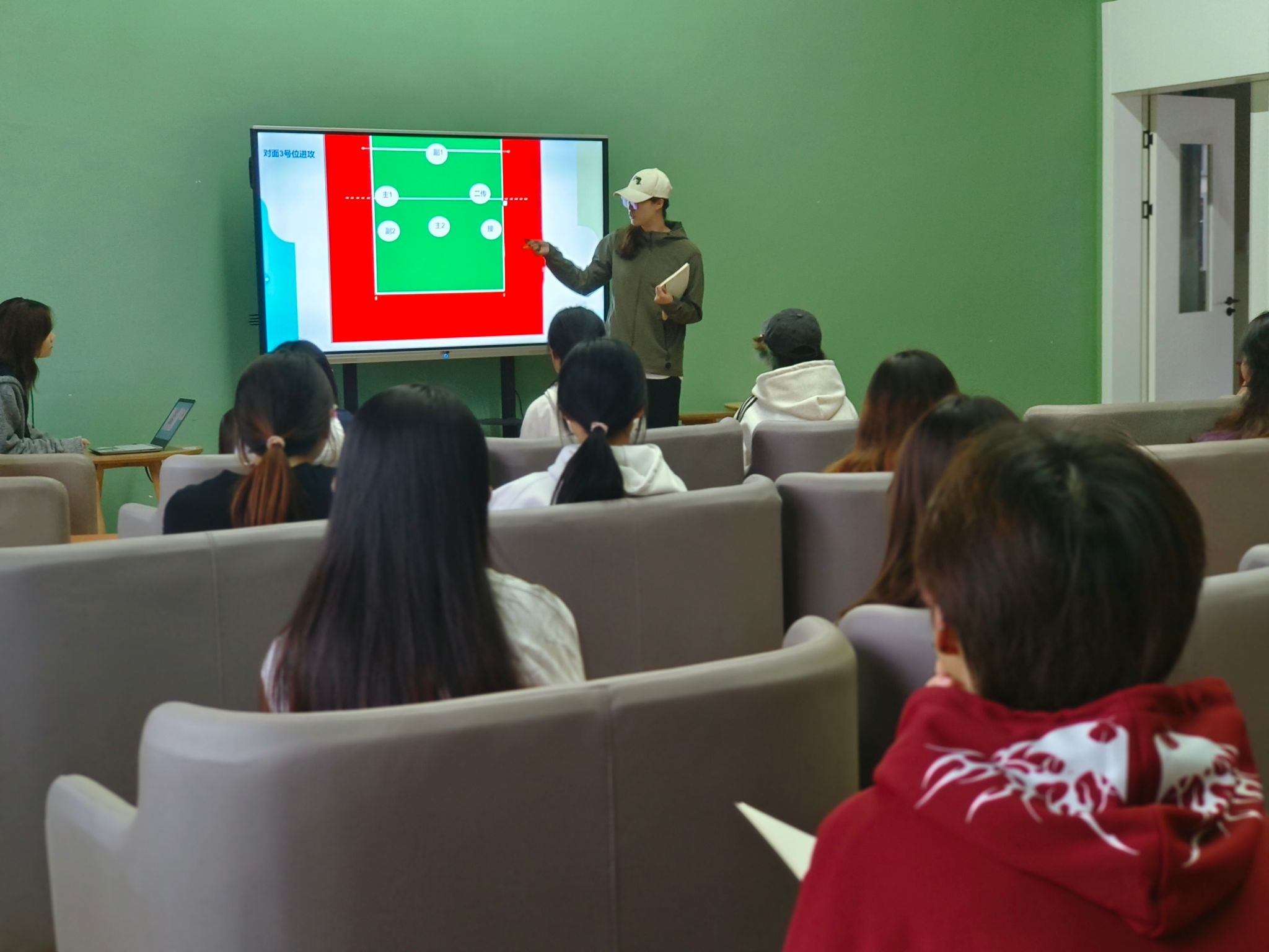 在最后,队员们共同观看了中国女排16年与巴西的比赛,通过视频案例分析,展示高水平运动员的技术运用和战术执行。比赛视频令人心潮澎湃,久久难以平静。比赛过程中,女排成员们的每一次奋力发球、飞身救球、强力扣杀都充满着无穷的力量与激情。她们在比分落后时展现出的坚韧不拔,在关键时刻表现出的沉着冷静,无不彰显出顽强的斗志和强大的团队精神。那一声声呐喊,不仅是对胜利的强烈渴望,更是她们内心坚定信念的尽情宣泄。观赛结束后,校女子排球队队员对此道出自己的感悟和体会。队员们各抒己见,互相讨论总结,从视频和彼此之间学习与进步。为未来的成长打下基础。