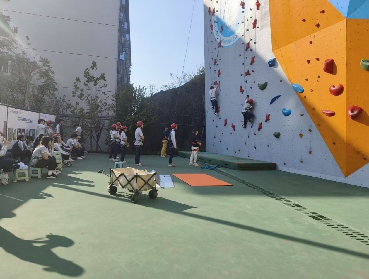 攀岩,这是一项极具挑战性的项目,面对那陡峭的岩壁,队员们需要鼓足莫大的勇气才能迈出第一步。而在攀爬过程中,每一次向上的伸手、每一次用力地蹬脚,都考验着他们自身顽强的毅力。队员们在岩壁上奋勇攀爬,不断挑战自我极限,这不仅是对个人身体素质的严格锤炼,更是对意志力的残酷考验。每一次克服恐惧、每一次突破身体的疲惫都让他们更加深刻地领悟到坚持的力量。在这垂直的战场上,没有退缩的余地,唯有勇往直前,才能抵达更高的地方。这也让同学们意识到,在人生的道路上,如同攀岩一般,会遇到诸多艰难险阻,但只要拥有坚定的信念和不屈不挠的精神,不断向上就能不断超越自我,攀向更高的山峰。