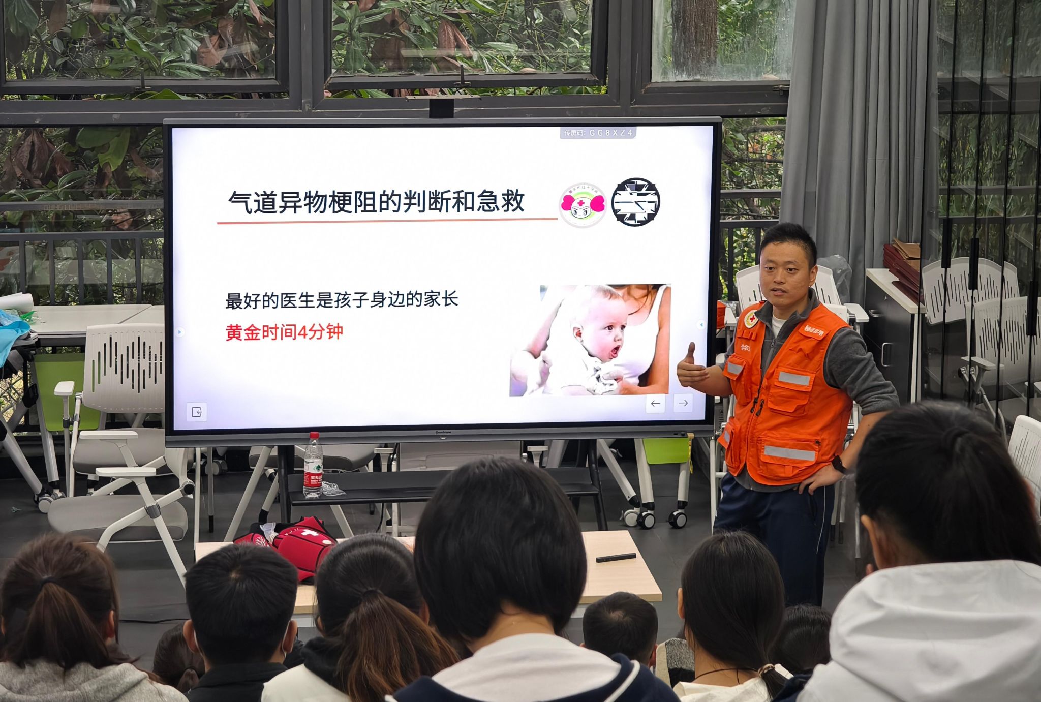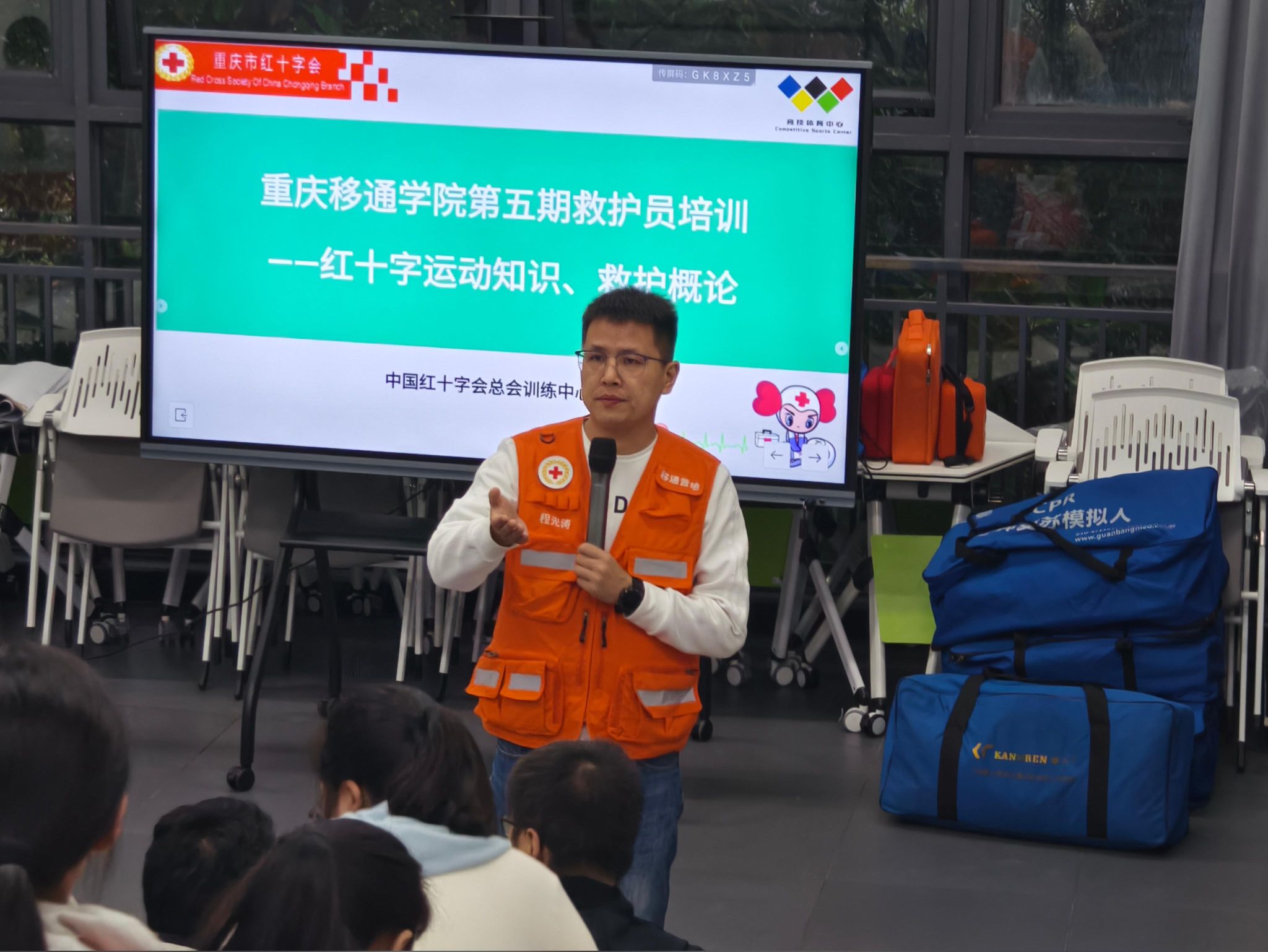 此次培训由专业的红十字会应急救护讲师团队授课,他们分别是重庆移通学院营地教育中心的程光涛、李华龙、余青河和田威四位教练,他们对应急救护知识有着丰富的经验。内容涵盖了心肺复苏、气道异物梗阻(海姆立克急救法)和创伤救护等常见急救知识技能。培训现场,讲师通过理论讲解、示范操作、模拟演练相结合的方式,生动形象地向学员们传授急救技巧。