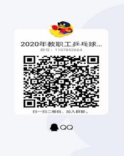 (三)报名参加比赛的老师,请加入2020年教职工乒乓球比赛QQ群:1107852664。(可扫码进群,二维码见附件二)