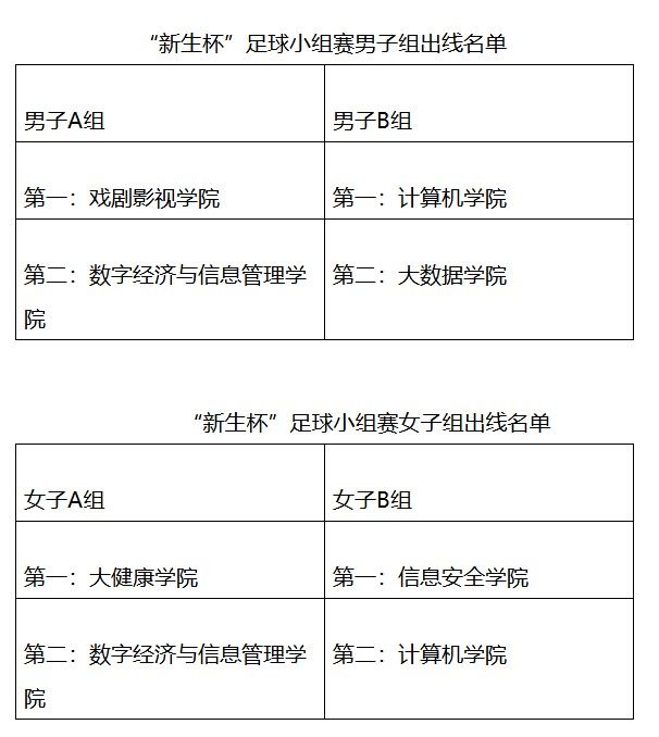 2024学年重庆移通学院(綦江校区)新生杯足球小组赛出线名单